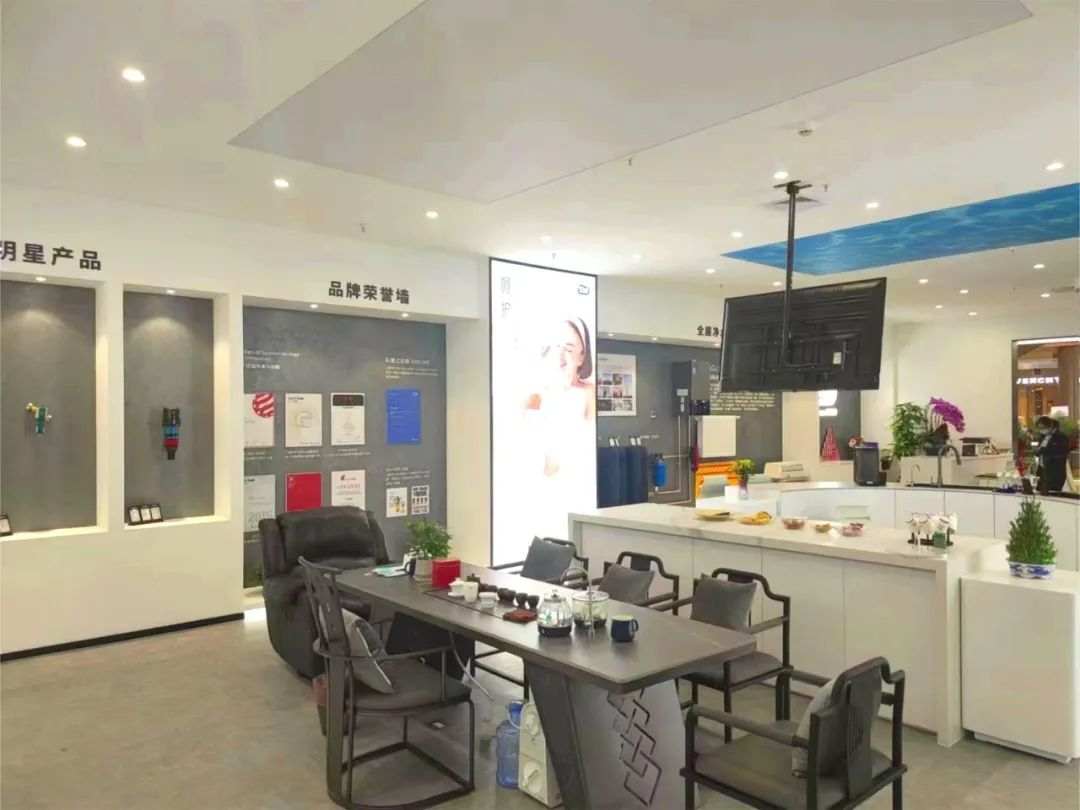 据悉,上海旗舰店面积达到160多平方米,分为品牌历史、品牌荣誉、全屋净水系统、前置产品和末端产品展示、大宅产品体验、小户型产品体验、明星产品展示、工程案例、售后安装、以及中央位置的用户休息体验区等展示区域。