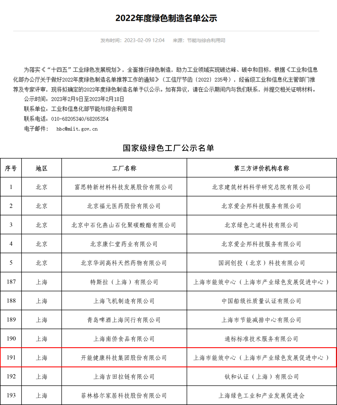 新年伊始,开能健康科技集团股份有限公司(以下简称“开能集团”)在工业领域绿色低碳发展方面实现了开门红。日前,在工信部发布的2022年度绿色制造名单中,开能集团成功获评国家级“绿色工厂”,此次入围,是对开能多年来践行绿色发展的最高肯定。这也是继2022年被评为上海市“绿色工厂”,开能集团收获的又一份“绿色成果”认证。