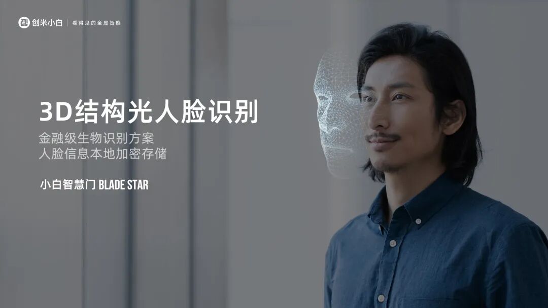 创米小白智慧门BLADE STAR采用第二代自研供电技术,可实现低压直流安全供电,从而解决用户重复充电的烦恼,让你的家庭智慧门时刻在线,守护居家安全。此外,创米小白智慧门BLADE STAR采用了3D结构光人脸识别技术,识别精度更高、更准确,通过内置红外摄像头,即使处于环境昏暗时,也能做到精准快速识别人脸。同时,智慧门BLADE STAR拥有近50项专利技术,利用差异化的技术优势,为市场带来高科技产品,为用户解决更多的痛点。