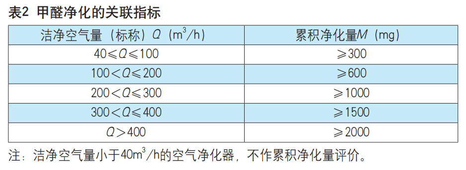 据中家院(北京)检测认证有限公司(中国家用电器检测所)健康家电检测中心主任张维超介绍,《空气净化器》新国标增加了颗粒物、气态污染物的CADR值与CCM值的关联。其中,颗粒物CADR与CCM关联性见表1;气态污染物的关联,是单成分加载下,对甲醛气体的CADR与CCM之间的关联性要求见表2。