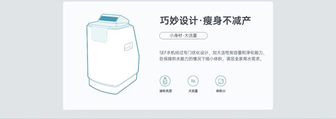 SEF系列中央净水机为用户提供更高性能的解决方案,尤其针对精装房或已装修后的房屋提供小体积大流量产品,灵活的安装方案。用专业可靠的全屋净水产品给用户更舒适生活体验。