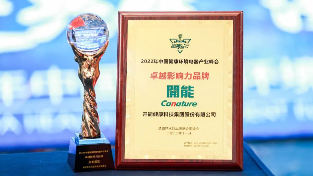 实力见证!开能健康荣获“卓越影响力品牌”称号