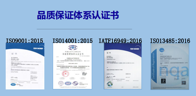 ISO9001、ISO13485及ISO14001四个国际认证体系。