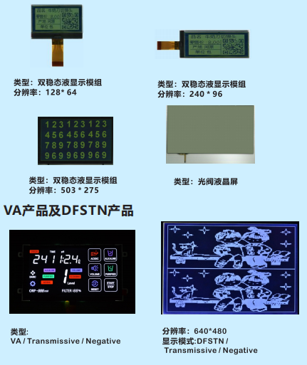 显示模组,订制TFT模组、高端STN产品、双稳态产品、13.3吋光阀、OLED模组、