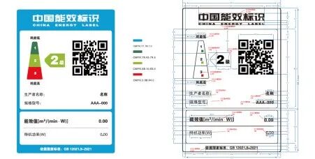 《实施规则》确定了电风扇能效标识样式,示例如下图。能效标识样式可从中国能效标识网下载。