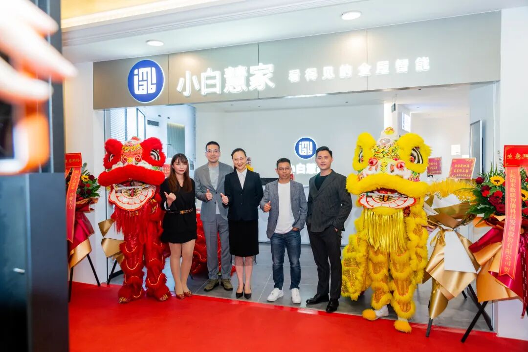 现场精彩的舞狮表演将剪彩仪式的热烈气氛推到了高潮。剪彩仪式结束后,所有到场嘉宾在张黎媛女士的引领下,来到位于三楼核心位置的小白慧家全屋智能体验馆进行了参观,共同见证了科技与美学、智能加生活的便捷舒心。