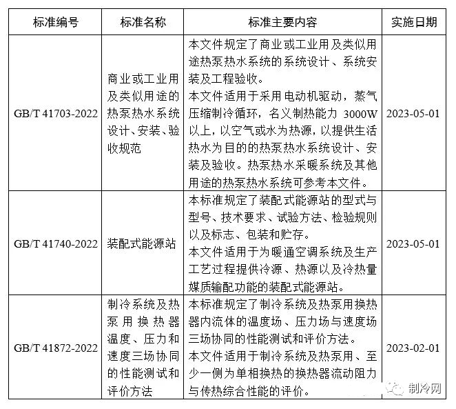 另外,10月12日,国家市场监督管理总局、国家标准化管理委员会发布2022年第13号公告,批准发布了708项推荐性国家标准和3项国家标准修改单。由全国冷冻空调设备标准化技术委员会归口的GB/T 41740-2022《装配式能源站》等3项国家标准也正式发布。