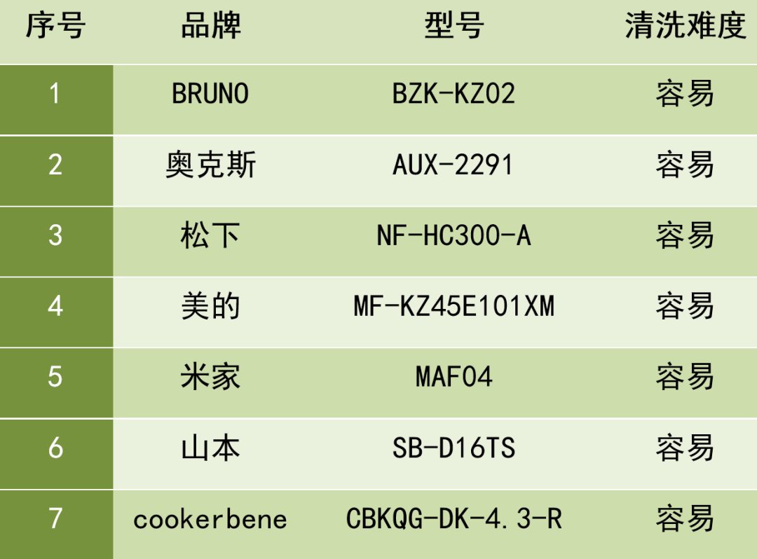 清洁难易度:有7款样品容易清洁