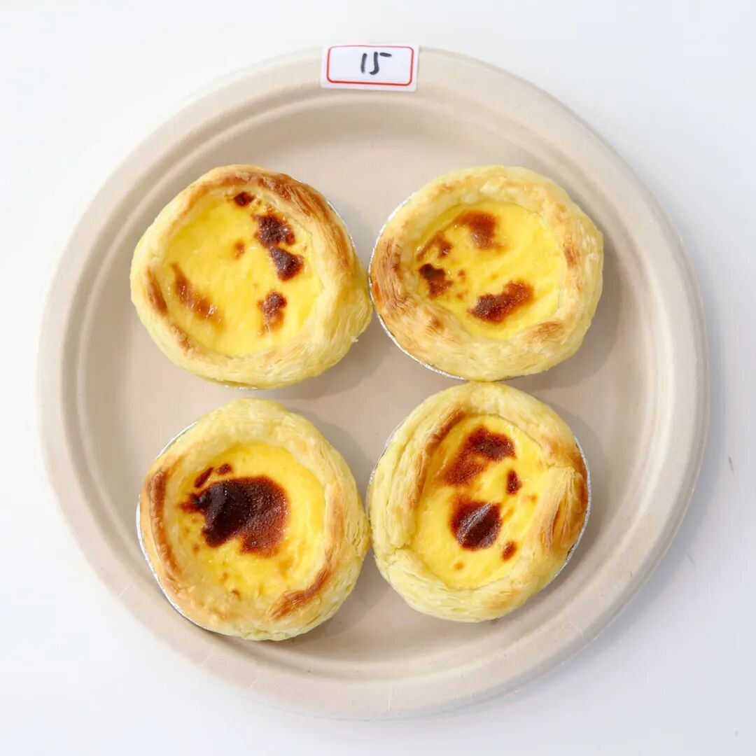 这个蛋挞成色真不错,和店里买的差不多。那个明显烤焦了。