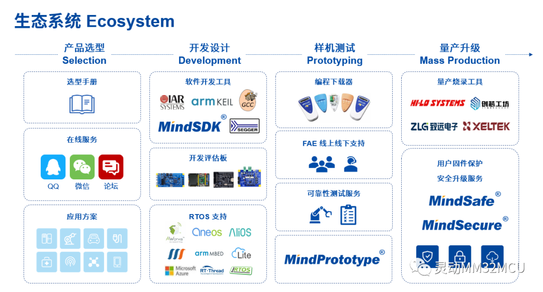 灵动客户涵盖智能工业、汽车电子、通信基建、医疗健康、智慧家电、物联网、个人设备、手机和电脑等应用领域。灵动微电子是中国为数不多的同时获得了 Arm-KEIL、IAR、SEGGER 官方支持的本土 MCU 公司,并建立了独立、完整的通用 MCU 生态体系。灵动微电子始终秉承着“诚信、承诺、创新、合作”的精神,为客户提供从硬件芯片到软件算法、从参考方案到系统设计的全方位支持。