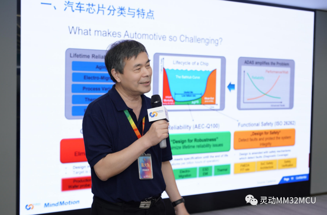 会上灵动股份质量SVP陈大为做了题为《我国汽车芯片产业现状&灵动车规芯片测试验证实验室》的演讲。陈老师分别从汽车芯片分类与特点,汽车芯片的标准,以及我国汽车芯片产业现状和汽车芯片产品的理解与实践四方面做了详细的阐述。灵动汽车芯片测试验证实验室的建立致力于从全视角进行车规产品的测试与验证”。