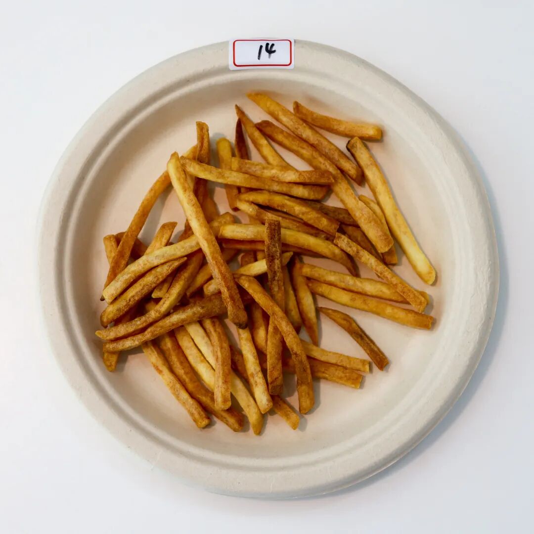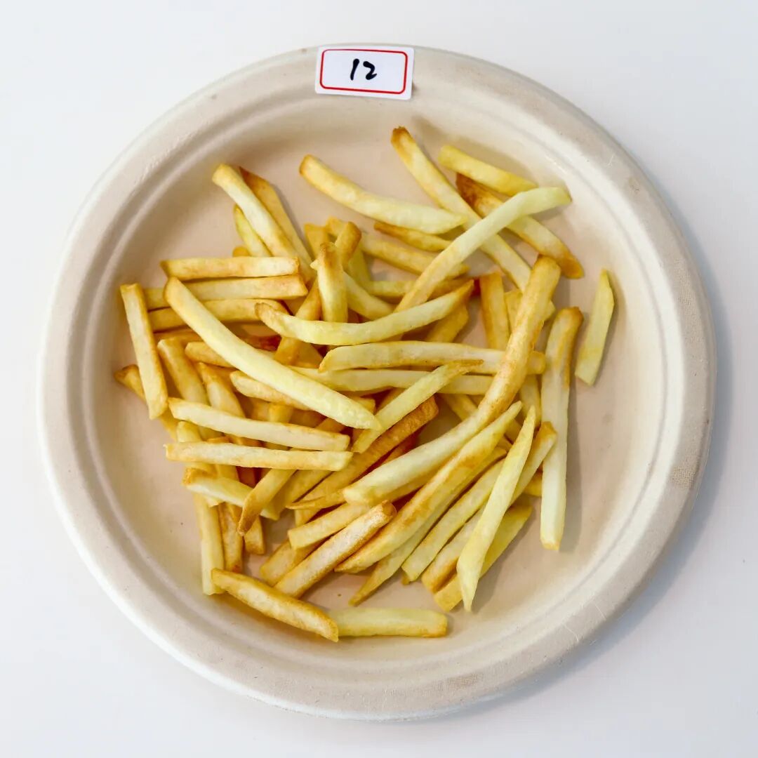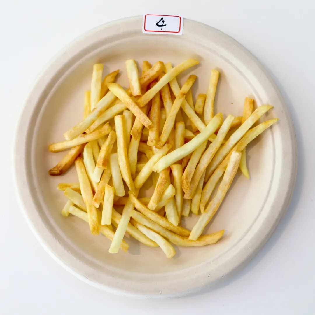 薯条成色最能直观反应空气炸锅产品的火力均匀度。通过本次现场测评,我们发现,炸薯条普遍存在上色不均匀的情况,表现相对优秀的空气炸锅产品能够做到让大部分薯条呈现金黄色诱人色泽。