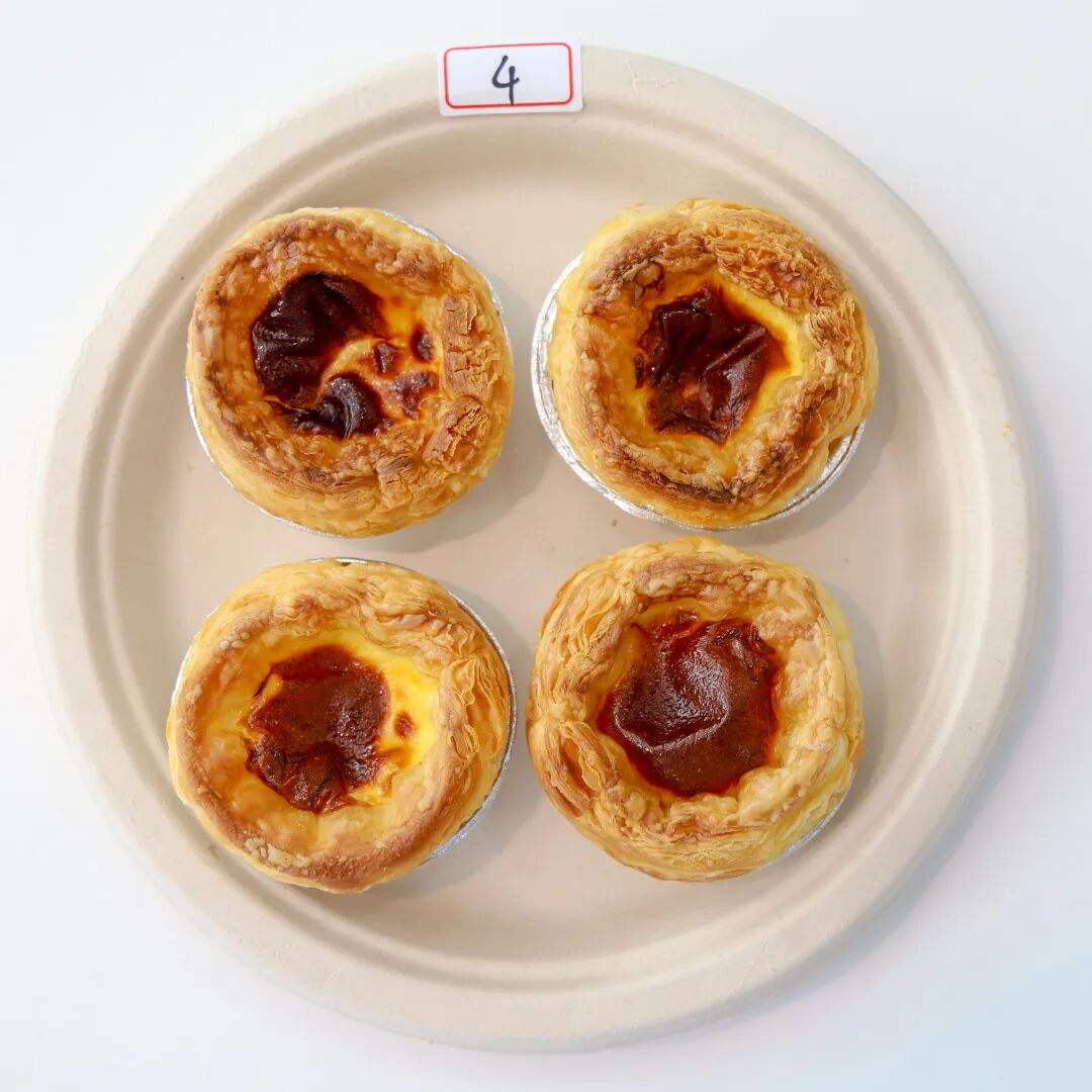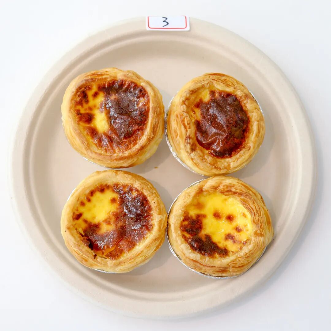 “这个蛋挞成色真不错,和店里买的差不多。那个明显烤焦了。”