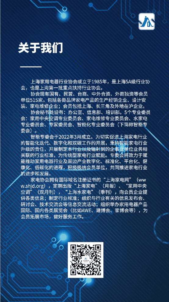 [温馨提示] 文章来源于上海家用电器行业协会公众号,转载注明原文出处,此文观点与查生意无关,理性阅读,版权属于原作者若无意侵犯媒体或个人知识产权,请联系我们,本站将在第一时间删掉 ,查生意仅提供信息存储空间服务。