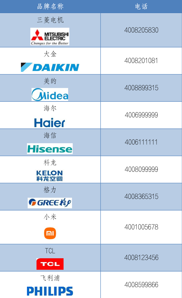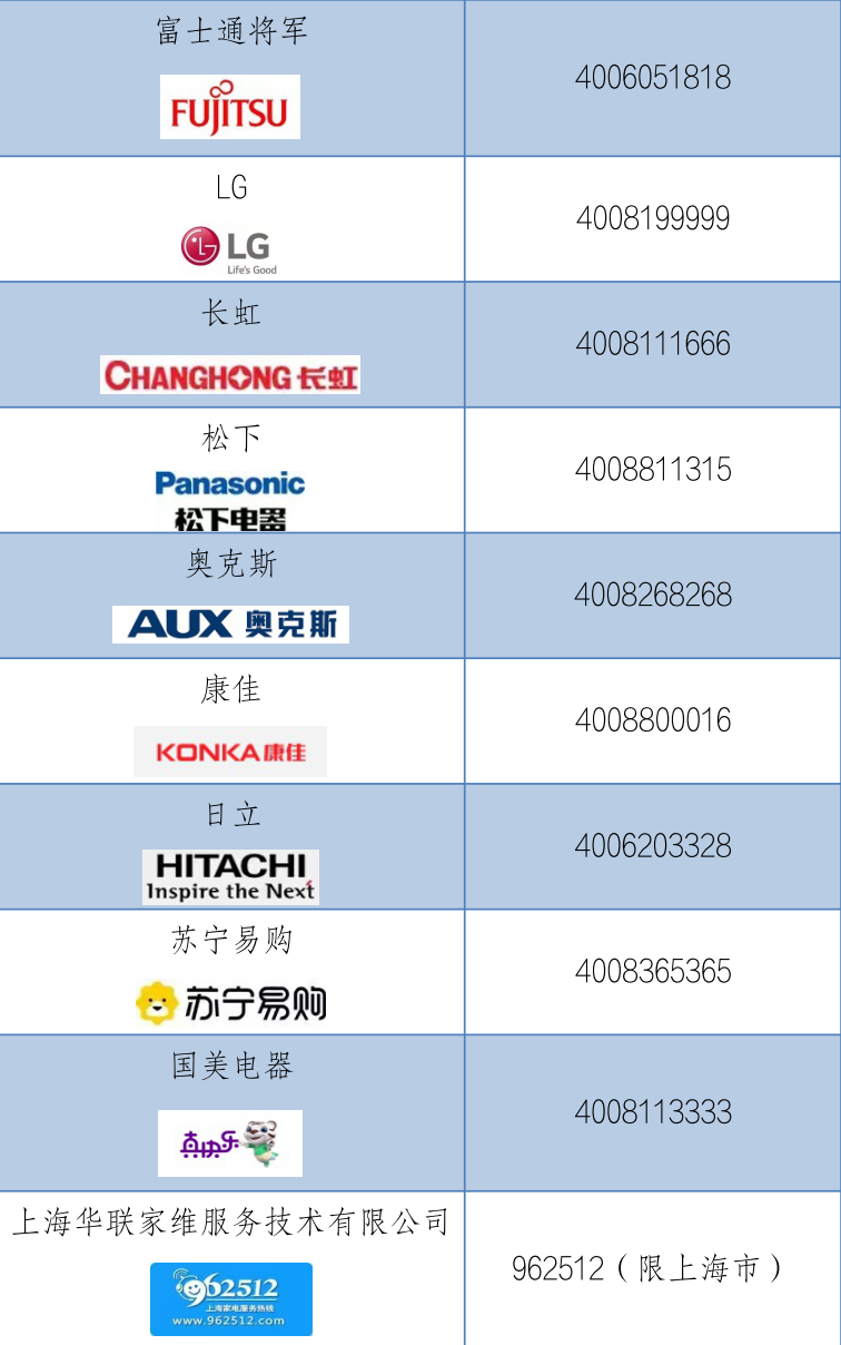 如果上述方法仍不能排除故障或正常制冷,消费者需要预约厂商上门维修。这里,市消保委家电办为你整理了部分正规空调服务企业名单。