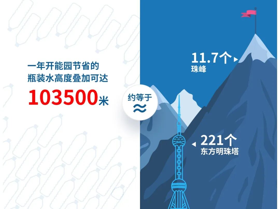约900人(开能总部)×1L/每天×250天(工作日)×2瓶(500ML/瓶)=450000瓶