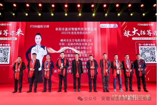 伴随着盈田空调的不断发展,涌现出了一批“感动盈田”的优秀经销商伙伴,他们用脚步丈量市场,用业绩抒写荣耀。为了表达对经销商的鼓励与支持,盈田公司表彰了2023年度做出突出业绩贡献的3位优秀经销商伙伴,并为其颁奖。