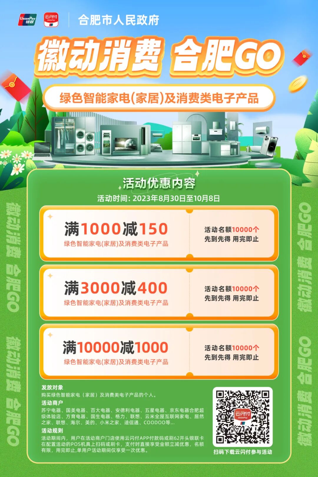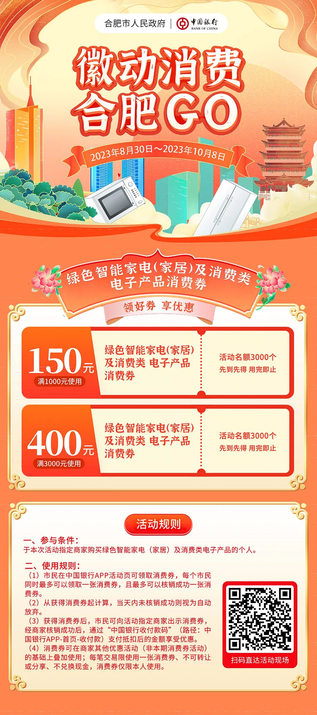 为进一步扩大我市消费规模,活跃消费市场,更好满足群众消费需求,经市政府同意,发放2023年合肥市绿色智能家电(家居)及消费类电子产品消费券。现将有关事宜公告如下: