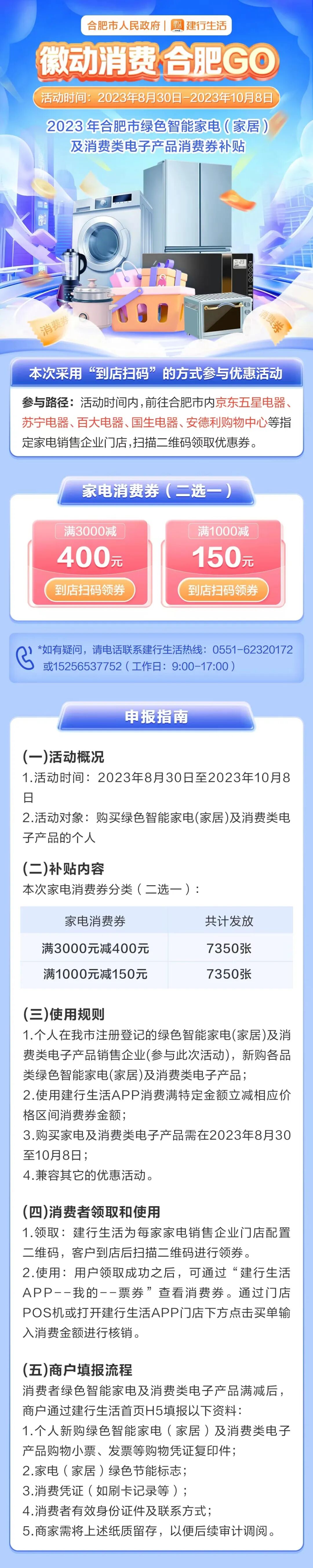 百大电器、苏宁易购、京东五星、国生电器、方育电器、安德利电器等我市大型家电销售企业结合此次消费券发放活动,联合生产厂家特别是合肥本地生产厂家,将推出消费券叠加优惠。