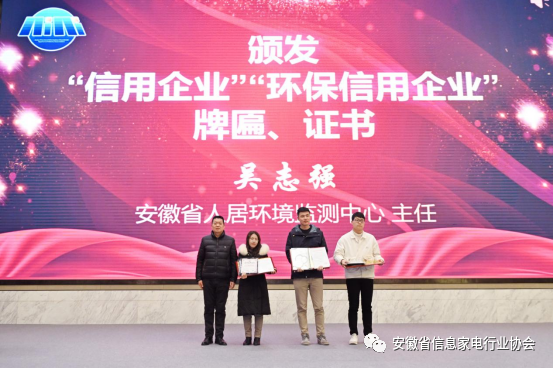 接着,安徽省人居环境检测中心主任吴志强为安徽万朗磁塑集团有限公司、安徽首创环境科技有限公司、合肥科希曼电器有限公司颁发“信用企业”“环保信用企业”牌匾和证书。 2022年协会首批会员单位获评信用企业和环保信用企业 |