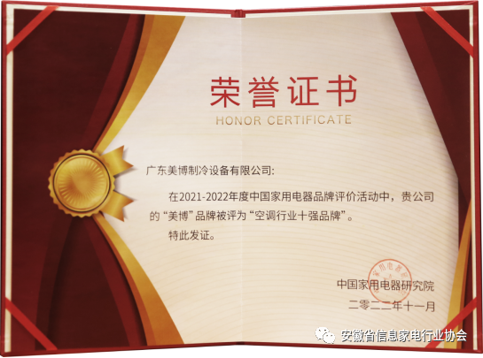 12月2日,国家工信部网站转发了《2021—2022年中国家电行业品牌发展报告》和家电行业品牌评价结果。美博因为在产品力、品质力和品牌力上的优异表现,被中国家电研究院评为“空调行业十强品牌”。