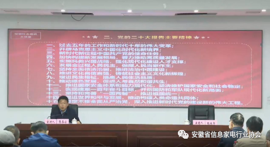 学习好、宣传好、贯彻好党的二十大精神,是当前和今后一个时期的首要政治任务。为在全省社会组织中迅速掀起学习宣传贯彻党的二十大精神热潮,在2022年10月31日举办了“安徽社会组织大讲堂”(第二期),邀请党的二十大代表,省民政厅党组书记、厅长张冬云宣讲党的二十大精神,省民政厅党组成员、副厅长张振粤主持大会。安徽省信息家电行业协会党支部书记、执行会长周保宇在现场参加会议,并组织协会党员同志、入党积极分子认真观看学习。