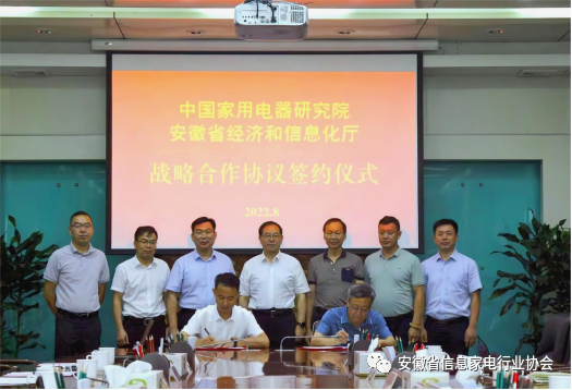 2022年8月17日,中国家用电器研究院院长刘挺率队前往安徽省经济和信息化厅进行访问,双方签署战略合作协议。