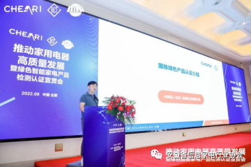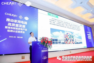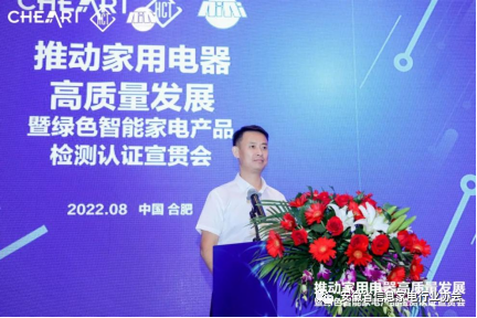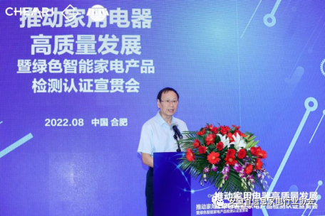 2022年8月18日,由中国家用电器研究院 中家院(北京)检测认证有限公司联合安徽省信息家电行业协会共同主办的“推动家用电器高质量发展暨绿色智能家电产品检测认证”宣贯会在合肥召开。安徽省经济和信息化厅二级巡视员查汉斌、中国家用电器研究院院长刘挺、安徽省经济和信息化厅消费品工业处处长吴合金、中国家用电器研究院副院长曲宗峰、安徽省信息家电行业协会执行会长周保宇等领导出席了本次会议,来自相关政府部门、行业协会、科研检测机构以及家电行业主要企业的专家代表齐聚一堂,共同探讨智能家电低碳绿色发展,共话产业未来。