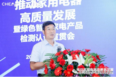 中国家用电器研究院副院长曲宗峰在致辞中表示:在“碳达峰”、“碳中和”的大背景下,绿色与智能的融合代表了家电行业发展的新方向。近期推进绿色智能家电下乡等政策的相继出台,将进一步促进家电消费升级,也为家电行业下一步的转型发展指明了方向。让家电更绿色、更智能,一方面将满足人民日益增长的美好生活需要,另一方面也有利于家电行业的高质量发展,对家电行业来说,要支撑绿色智能家电普及的下一轮浪潮,实现高质量发展,还需要继续完善标准、检测和认证等质量基础设施建设,这关乎到传统家电产业集群升级,也关乎我国产业转型和经济结构调整。