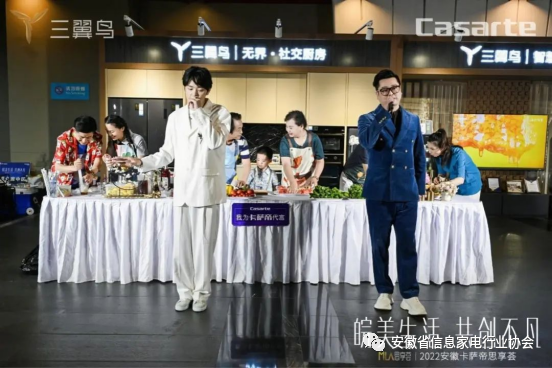安徽百大电器连锁有限公司总经理张洪先生现场讲解卡萨帝空气洗和衣物护理。“四方食事,不过一碗人间烟火气”,厨房对中国家庭是非常特别的场所,可以说是记录着中国家庭的亲情密码,一道好的美食,离不开好的厨电,通过情景表演秀《我的合肥 我的小吃》展示了卡萨帝无界·社交厨房给人们带来的便捷性。
