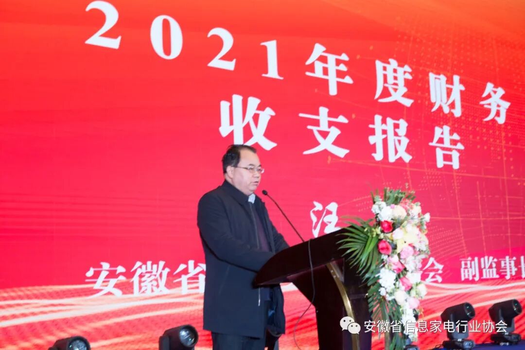 2022年1月6日下午,安徽省信息家电行业协会第三届三次理事会在合肥世纪金源大酒店召开。原省经信委党组副书记、副主任张德山,党组成员、副主任王庆山,党组成员、局长夏传友,省民政厅社会组织管理局局长阚家安、省经信厅消费品处处长吴合金、省商务厅市场运行和消费促进处处长贾明飞、副处长江洪、副处长宋飞、合肥市经信局、芜湖市经信局、滁州市经信局、滁州市经开区、芜湖市经开区、当涂县经开区、省工程咨询研究院负责同志,协会执行会长周保宇、监事长杨仁标、副监事长汪华,以及协会专家委员会、标准化委员会、秘书处等分支机构负责同志和来自全省各会员企业及分会会员企业200余人参加了会议。会议由协会副秘书长王乐献主持。