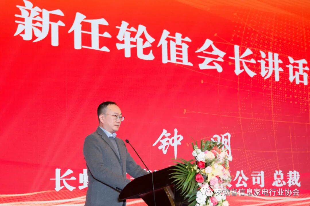 接着钟明会长在致辞时表示作为新一任轮值会长,深感责任重大,使命光荣,并对与会各位代表的信任表达了谢意。同时对协会2022年工作重点讲了几点工作思路。他提出,一是要不断推进安徽家电事业向前发展,要把握好当前省政府对发展协会、支持企业、促进行业的政策和决心。二是要创新服务,大力推动我省家电企业转型升级。三是要积极调研,主动反映行业企业诉求。通过广泛深入的研究,切实了解企业困难,向有关部门反映,力争在推动我省智能家电产业政策环境方面有新的突破。四是要发挥优良传统,不断完善和加强自身建设,坚持着服务兴会、服务立会的初心。相信在所有行业同仁的共同努力下,一定能开创安徽家电行业和协会工作新局面。