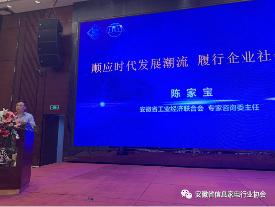 最后,陈家宝主任以“顺应时代发展潮流,担当企业社会责任”为主题进行了企业社会责任宣贯。他表示,企业履行社会责任是我国经济转型升级、实现高质量发展的需要,是法律法规赋予企业的法定职责;是参与国际竞争的必备条件,更是企业生存发展的内在需要。企业履行社会责任不仅可以为企业赢得良好的社会声誉,增强企业软实力,加强和改善企业管理,增强企业凝聚力和竞争力,还可以促进企业做大做强,实现可持续发展。发布社会责任报告是大势所趋,于政府、于企业、于社会都有着十分重要的积极意义,他还诚邀我省家电企业参与到此项工作中来,共同参与社会责任工作的建设与发展。