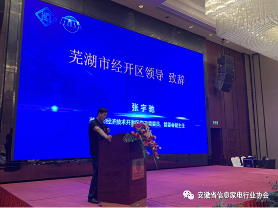 会上,芜湖市经开区管委会副主任张宇驰对此次智能家电产品认证暨社会责任宣贯会议在芜湖举办表示欢迎。他表示,芜湖经开区自设立以来,始终坚持主导产业培植、龙头企业培育、产业链配套完善作为关键环节来抓,聚集了以美的、江森日立为龙头的一大批智慧家电产业链关联企业。目前已经形成了一条较为完整的家电产业链和一定规模的家电产业集群。截至2020年,芜湖经开区实现年产值超400亿元。经开区还十分重视培育企业自主创新能力和推动互联网与制造业融合,支撑家电企业升级,助推家电产业壮大。