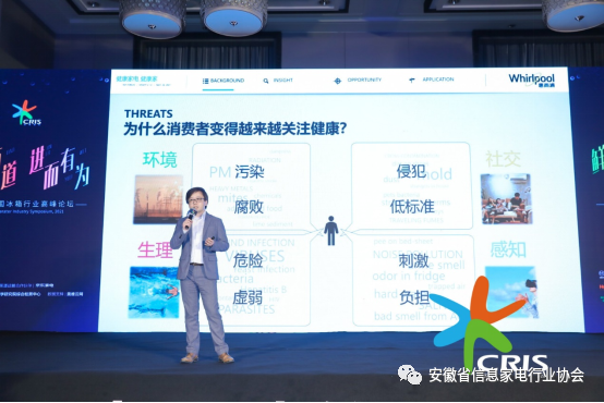 惠而浦(中国)冰洗产品市场部总经理单泠璇先生也以“健康家电·健康家”为题发表演讲,从消费者对健康的关注出发,展示了惠而浦如何精准直击消费者需求痛点,进行冰箱产品的研发创新,引领健康生活。