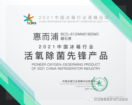 惠而浦折桂“2021年中国冰箱行业健康生活品质守护”品牌大奖【2021年5月26...