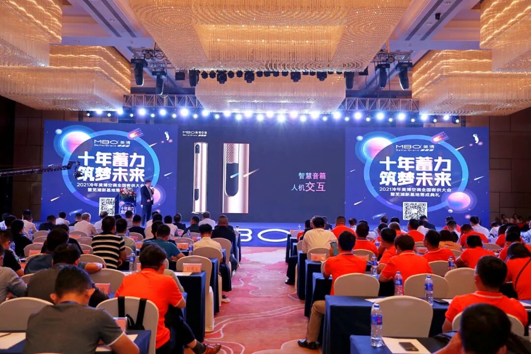 以共享空调杀出巨头阵营、开创美式轻奢潮流、迅速跨上百万销量台阶、稳居空调行业TOP10地位……美博空调创业10年,已是名副其实的产业“后浪”。而美博空调面向未来打造全球“新一代空调”领跑品牌的战略目标和市场野心,也在刚刚召开的新冷年全国客供大会和芜湖新基地落成典礼上展露无遗。“今天,既是我们新冷年全国客供大会首次在芜湖举行,又是我们占地400亩、投资10.8亿、年产能500万台规模的智能制造基地的落成典礼之日。”9月23日,伴随着美博集团董事长余方文的开场致辞,2021冷年美博空调全国客供大会正式拉开序幕。同一天的举行的芜湖新基地落成典礼,同样也是行业重头戏和大事件。