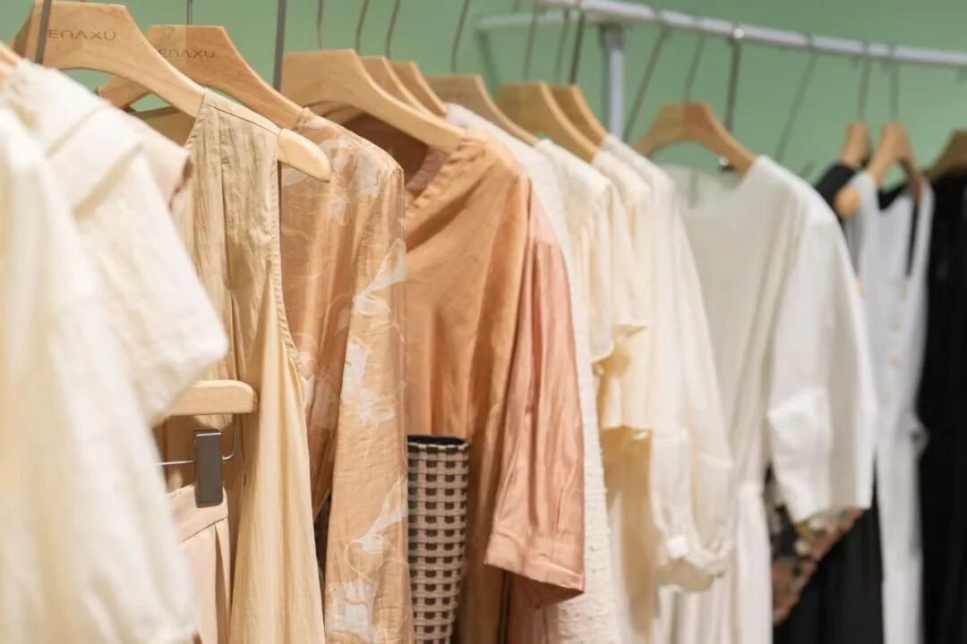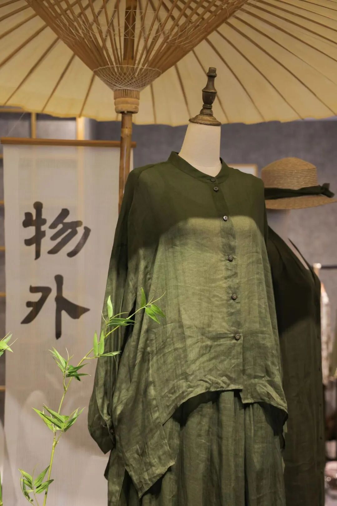 艺尚小镇再次带领8家优质时尚企业组团亮相,既有以片断lovlife、bosie、ZUEE、D.SIGN、马克珍妮为代表的全年龄段时尚服装品牌,也有以SHIJIE诗简为代表的新中式创新品牌、居家时尚品牌从轻及以“店+”为代表的时尚产业赋能平台。据SHIJIE诗简品牌相关负责人介绍,今年新中式服装之风越刮越猛,不少人已经开始穿上马面裙、泡泡袖旗袍等既含有中式元素又符合现代生活习惯的服装通勤。“我们这次增加了不少电商选款,在产品上着力使用丝、棉、麻等天然纤维以及香云纱、宋锦等非遗可持续面料及工艺,希望打造女装的松弛感,传达以人为本的理念。”