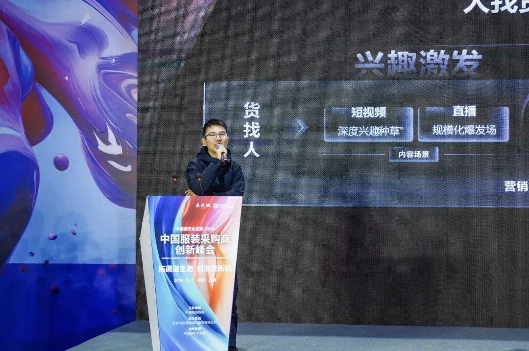 抖音电商综合业务女装行业运营总监陈敬夫带来了《抖音电商“织”造中国 助力女装产地溯源商家升级转型》的分享。他介绍了全域兴趣电商的蓬勃发展,以及抖音电商在打通“货找人”和“人找货”双向链路方面的努力。此外,他还分享了如何通过平台打造热点,助力消费新增长的经验。