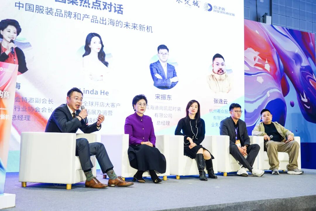 圆桌热点围绕“中国服装品牌和产品出海的未来新机”,展开热烈的讨论。主持人是中国中小商业企业协会跨境电商分会副会长、泰普勒跨境咨询/泰普勒出海传媒总经理薛晓玉。