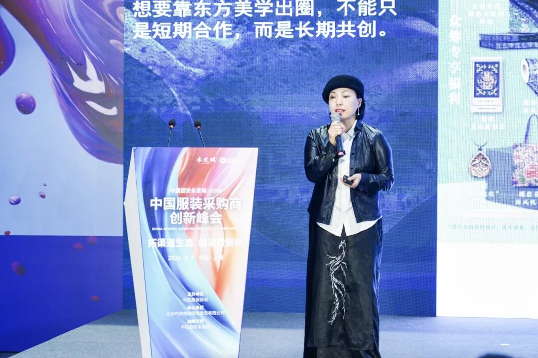 CCSF中法时尚服装设计中心创始人&院长陈巍带来了《色彩企划对消费与采购决策的影响》的分享。她强调了色彩在消费者购买决策中的重要性,并分析了国际上“东方审美”的崛起趋势。同时建议品牌应学会运用“传承”元素,在相互感知中引发品牌、文化与人群之间的精神共鸣。