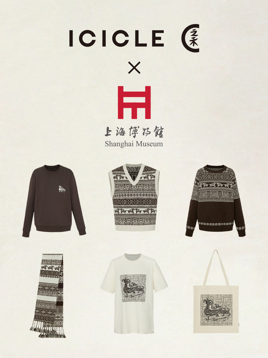 近日,ICICLE之禾携手上海博物馆共创合作系列,旨在传承中国古代艺术之精粹,予大众生活以美的启示。ICICLE之禾本季创作灵感源自上海博物馆镇馆之宝“大克鼎”和另一青铜器代表作“父乙觥”的铸造纹样,推出毛衣、针织背心、围巾、短袖T恤、帆布包等单品。
