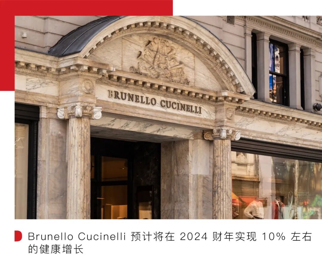 同样在业绩喜人时保持谨慎乐观的还有意大利羊绒品牌 Brunello Cucinelli。2024 年春夏系列的大量订单、以及正在进行的 2024 年秋冬系列在自营精品店和多品牌商店的良好销售开局,令该品牌 对 2024 财年业绩充满信心。品牌创始人、执行主席兼创意总监 Brunello Cucinelli 表示,“预计将在 2024 财年实现 10% 左右的健康增长,并拥有非常可观的利润率和利润,符合我们‘优雅增长’‘健康盈利’的理念……此外,预计 2025 财年的营业额仍将实现 10% 左右的均衡稳健增长”。
