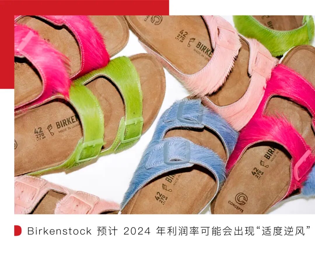 具体到细分赛道,在鞋履方面,德国鞋履品牌 Birkenstock 在 2023 年迎来了“250 年历史上最成功的一年”。但受成本上升和业务量扩张双重影响,预计 2024 年利润率可能会出现“适度逆风”,营收将保持在 17.4 亿欧元至 17.6 亿欧元之间,较 2023 年增长 17% 至 18%,且将在未来一年投资 1.5 亿欧元,以用于扩大门店和提高产能。对于这一扩张型战略布局和双位数增长预期,首席执行官 Oliver Reichert 在展望 2024 财年时表示,“将继续坚定致力于为客户提供不折不扣的优质产品,不受宏观经济大背景的影响,继续在门店位置、品类拓展、分销方面发力,从而有信心进一步发展我们的业务。”