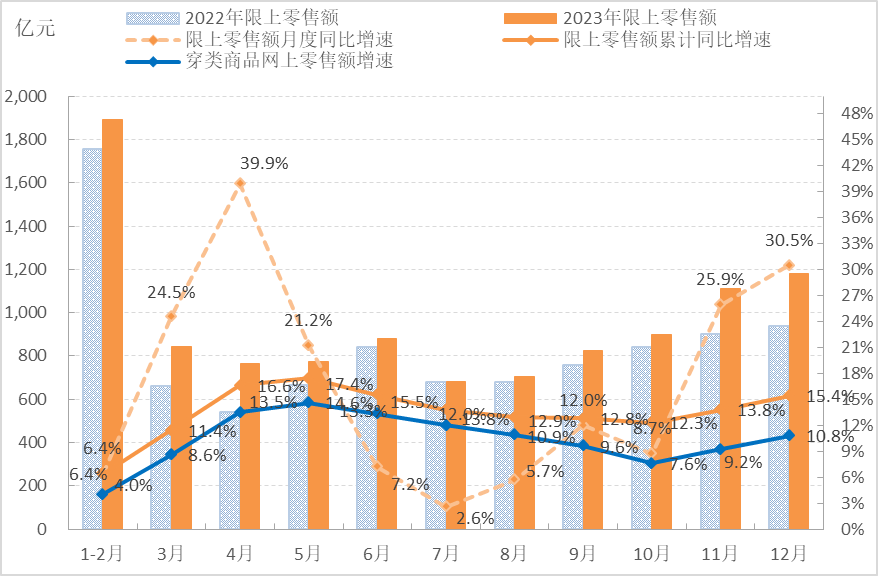 2023年,我国服装行业面临的外部环境更趋复杂严峻,全球经济增长放缓,国际市场需求收缩,服装行业承压前行。随着我国宏观经济回升向好以及一系列扩内需促消费政策措施落地显效的带动,内销市场持续回暖,我国服装企业转型升级和创新发展不断推进,行业经济呈现“总体降速运行、年末边际改善”的态势。展望2024年,服装行业面临的发展形势仍然复杂严峻,服装企业需要持续加快创新发展步伐,加强现代化产业体系建设,推动服装产业向高端化、智能化、绿色化、融合化发展。