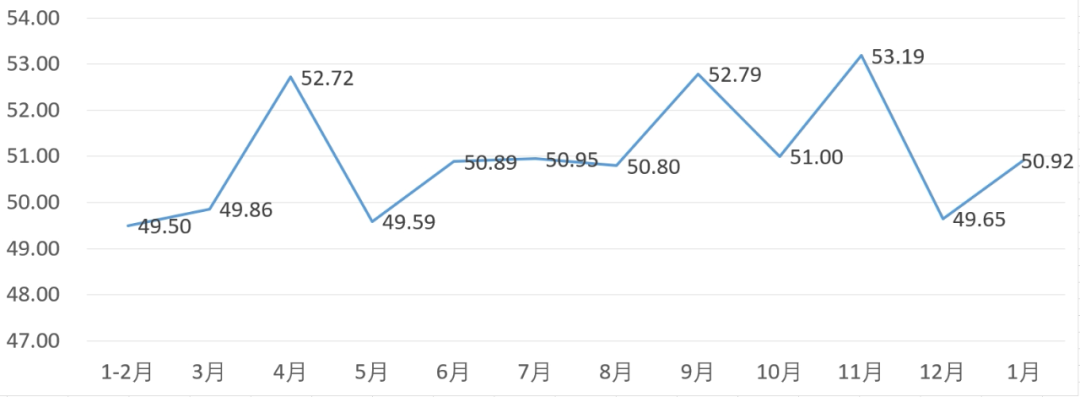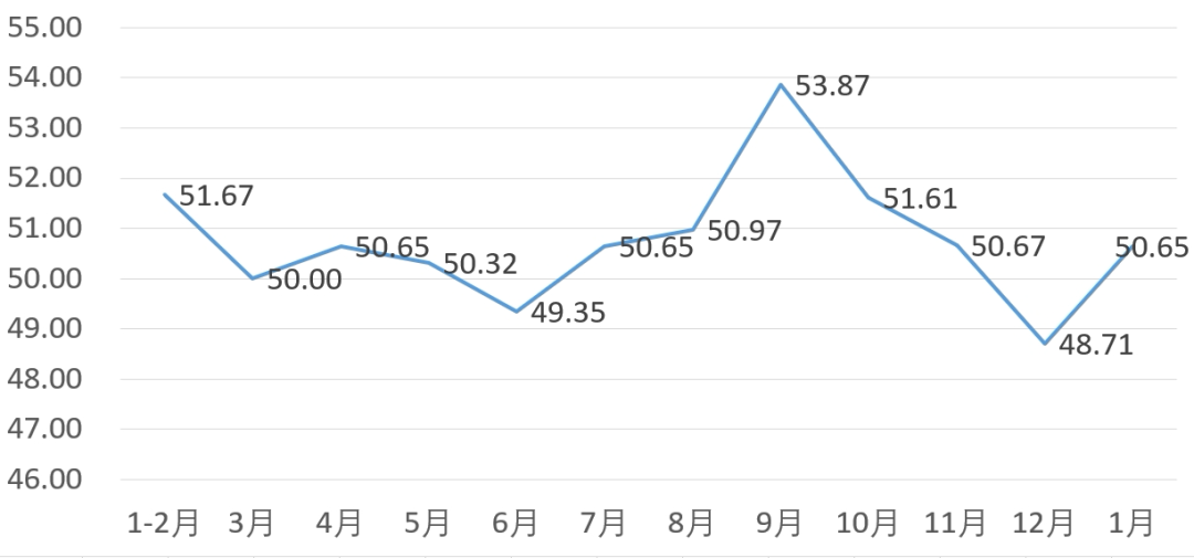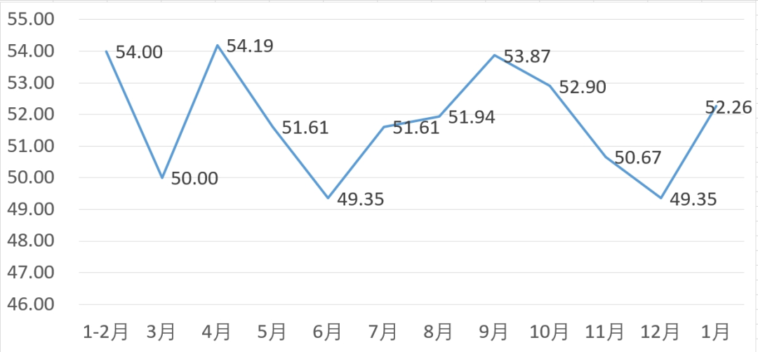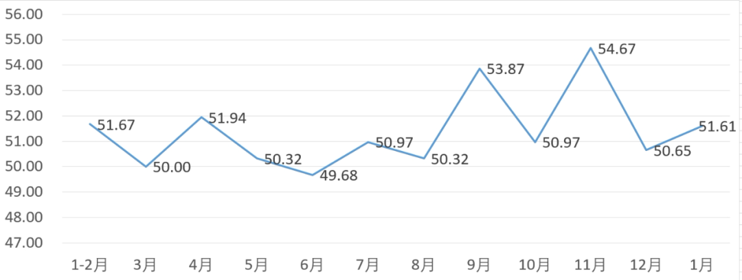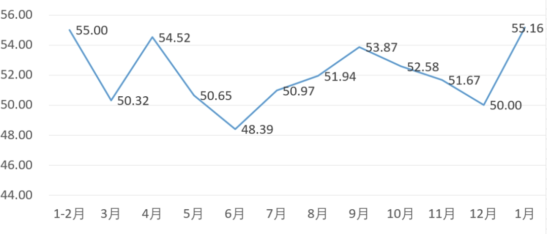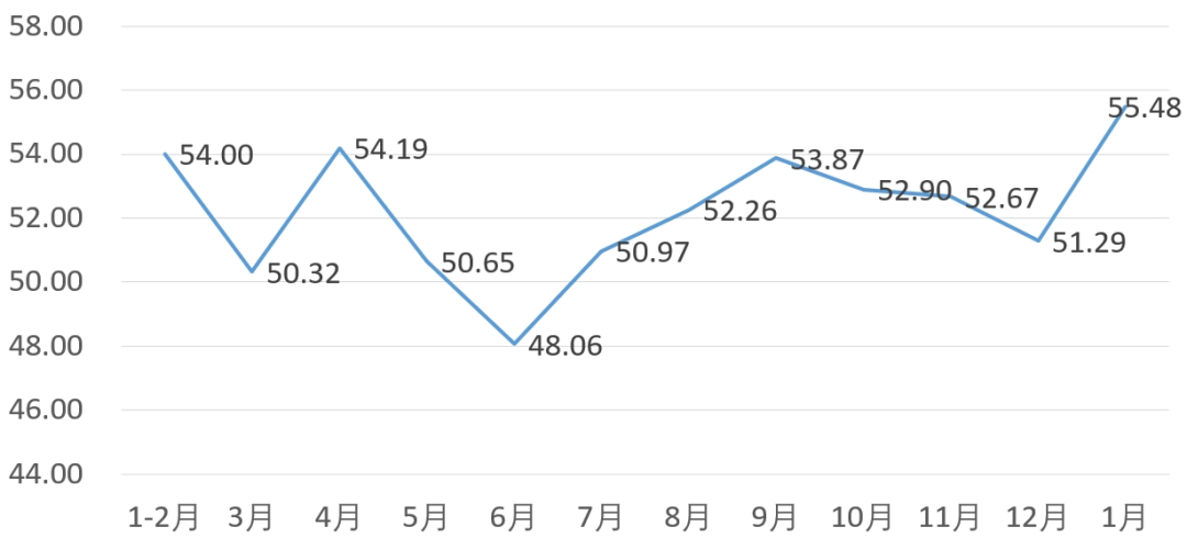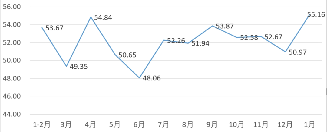 从管理者景气指数来看,总指数中,1月管理者景气指数为53.39,较上月上升3.23个百分点;经营环境指数为49.68,较上月上升0.65个百分点。