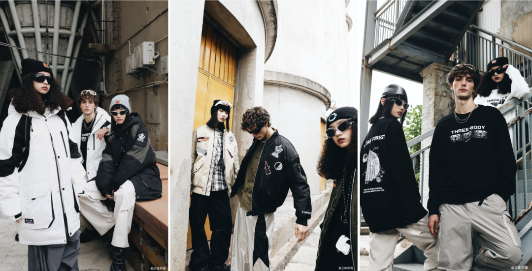 时下,消费需求从物质层面向精神层面转化,跨界联名已成为品牌“破圈”的密码。众多品牌通过IP打破边界,用“讲故事”驱动产品价值提升,唤起消费者的情绪共鸣。但如何进一步挖掘IP内涵,让其深度赋能品牌文化内核,是品牌跨界IP思考的关键。毋庸置疑,在IP赋能品牌价值张力方面三体宇宙是前进的、跃升的,是具有一定参考价值的。当三体宇宙将IP能量释放至时尚产业,与361°、利郎Less is more、PYE等服装品牌展开合作,联名期间所打造出的蕴含科技元素及功能的产品,强化了品牌的价值观和产品的个性表达,最终实现“1+1>2”的效果。回看早期《三体》IP和361°的联名,《三体》的宏大宇宙观始终贯穿着对地球文明的热爱,这与361°“多一度热爱”的品牌精神高度一致,同时《三体》IP所体现的未来科技感与361°“致力于提供更高科技价值的运动设备”理念完美契合,诸多契合点也得以让合作一再延续和深入。