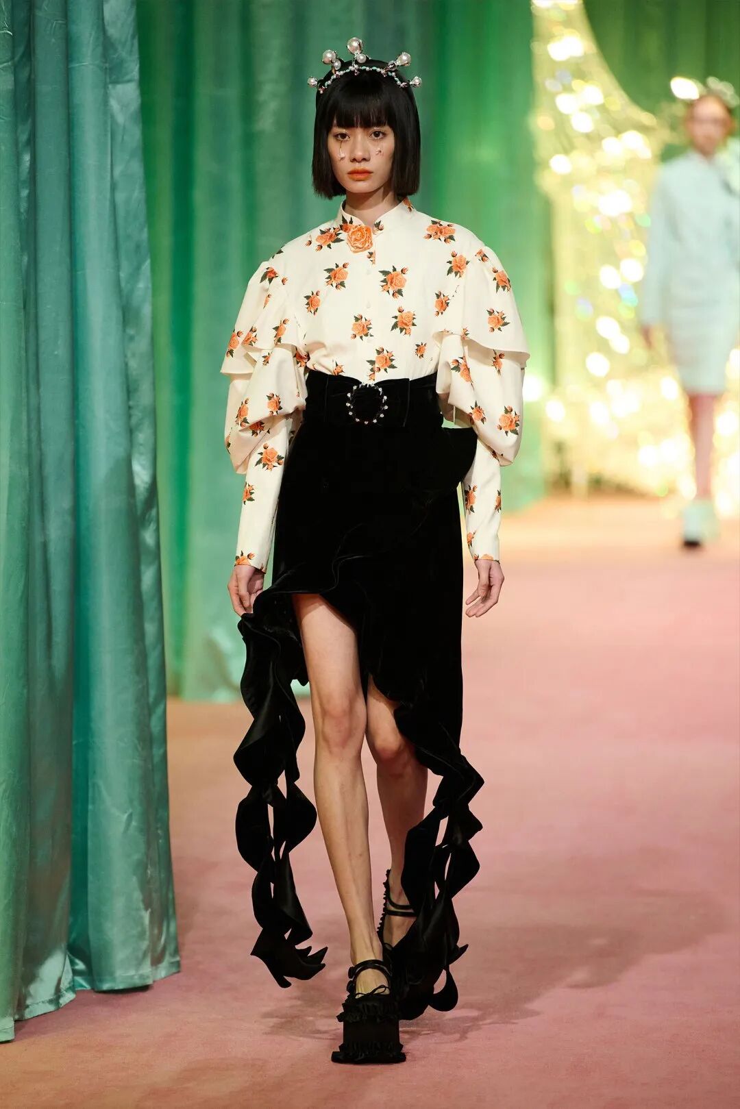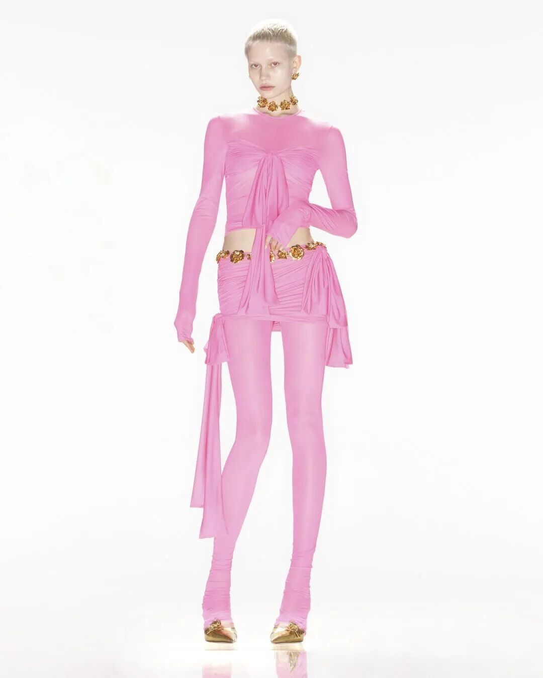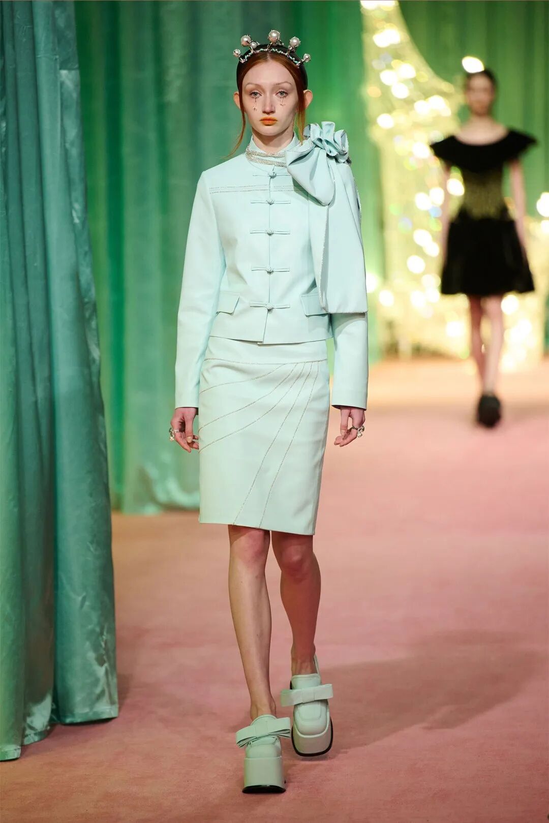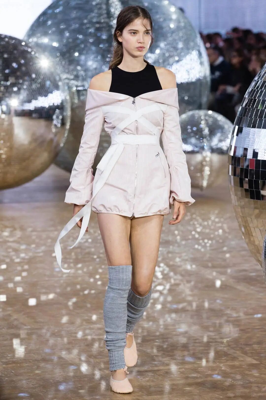 从字面上看,“Balletcore”就是受芭蕾舞者日常练功服和演出服启发的穿搭风格,将纱裙、针织长筒袜、缎面平底鞋、薄纱长飘带等一系列芭蕾风格元素融入人们的日常衣橱。