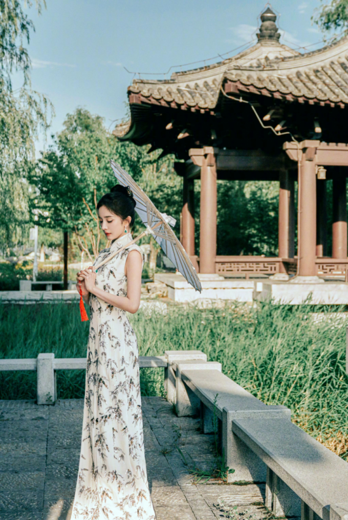 “新中式风格”是将中式元素与现代的廓形材质巧妙融合以此塑造出含蓄秀美的穿搭造型。立领、斜襟、盘扣是新中式服饰的标志性元素。