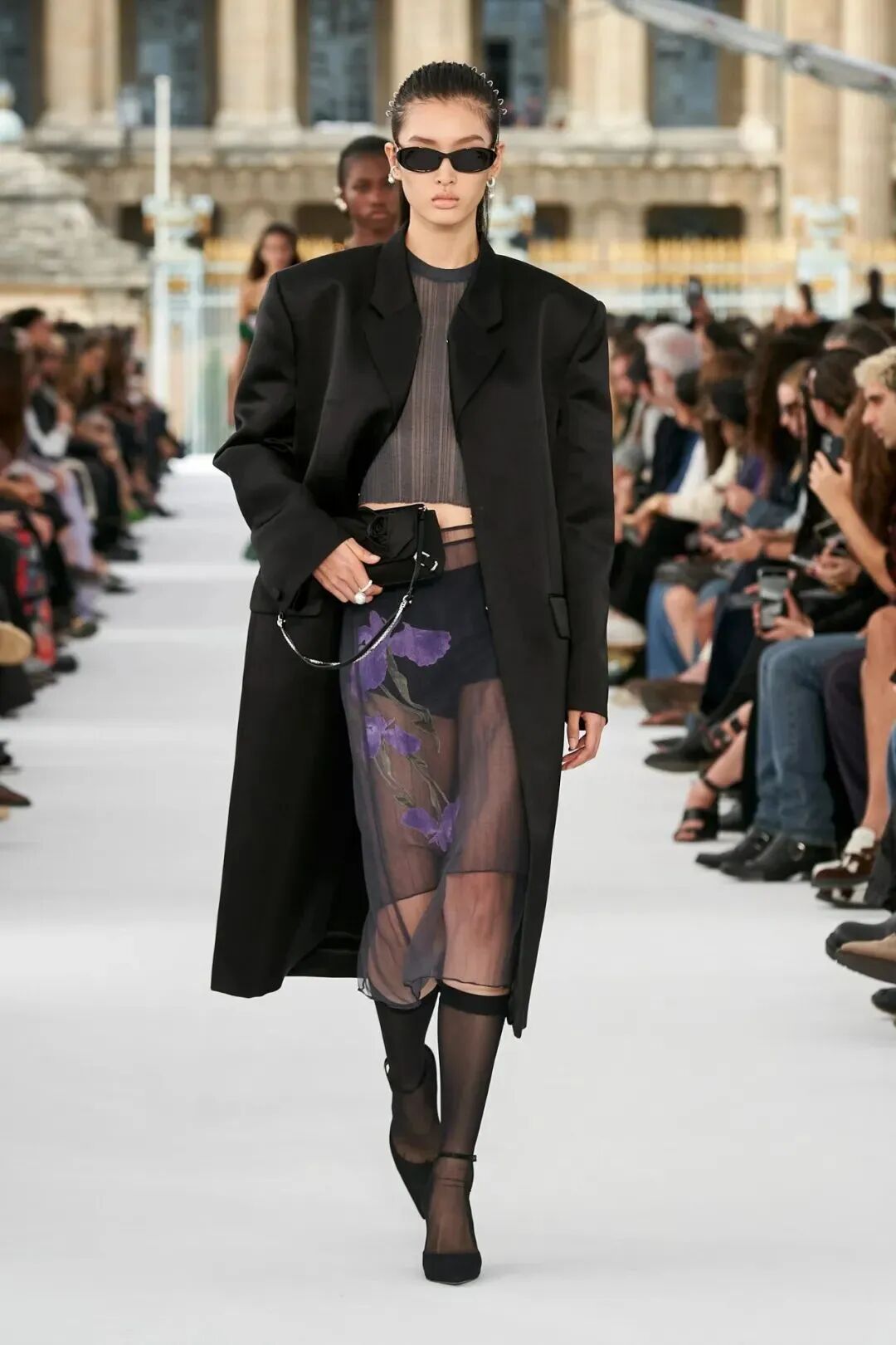 这不仅仅是展示尽可能多的身体。各品牌将透明半身裙视为分层造型中贴心的一部分,为经典服装增添深度和质感。这些裙子通常长度及膝或及膝,采用欧根纱和薄纱等浪漫面料制成,搭配灰色针织衫、外套、束带西装外套、芭蕾平底鞋或乐福鞋等基本款,打造出适合日常穿着的外观。